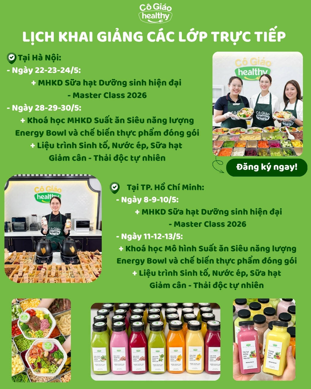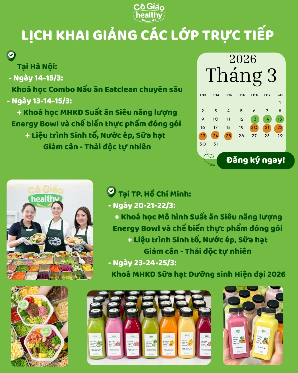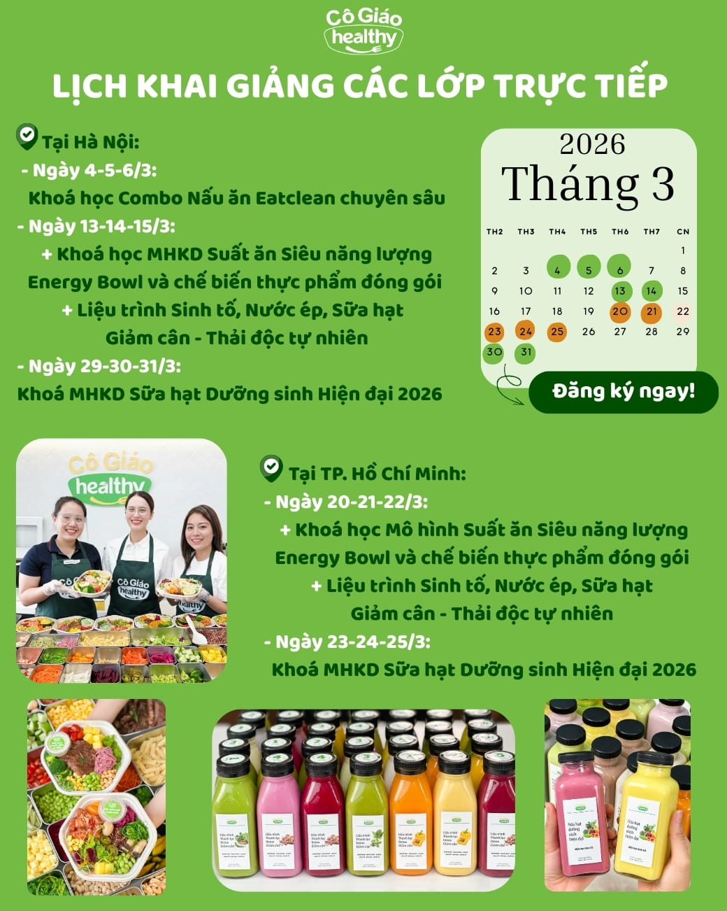 Các lớp học nấu ăn healthy với những công thức bổ dưỡng, dễ làm và đầy màu sắc.