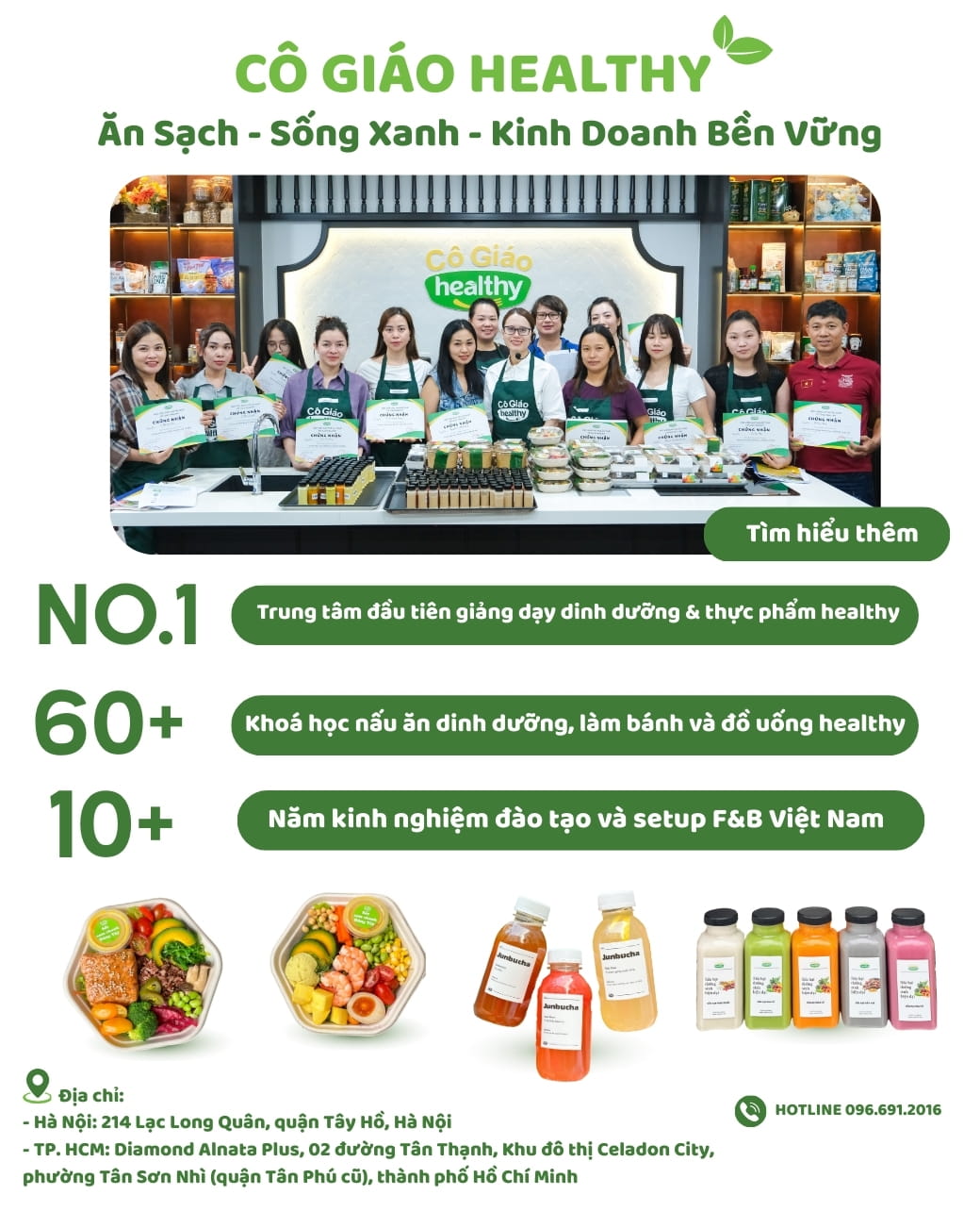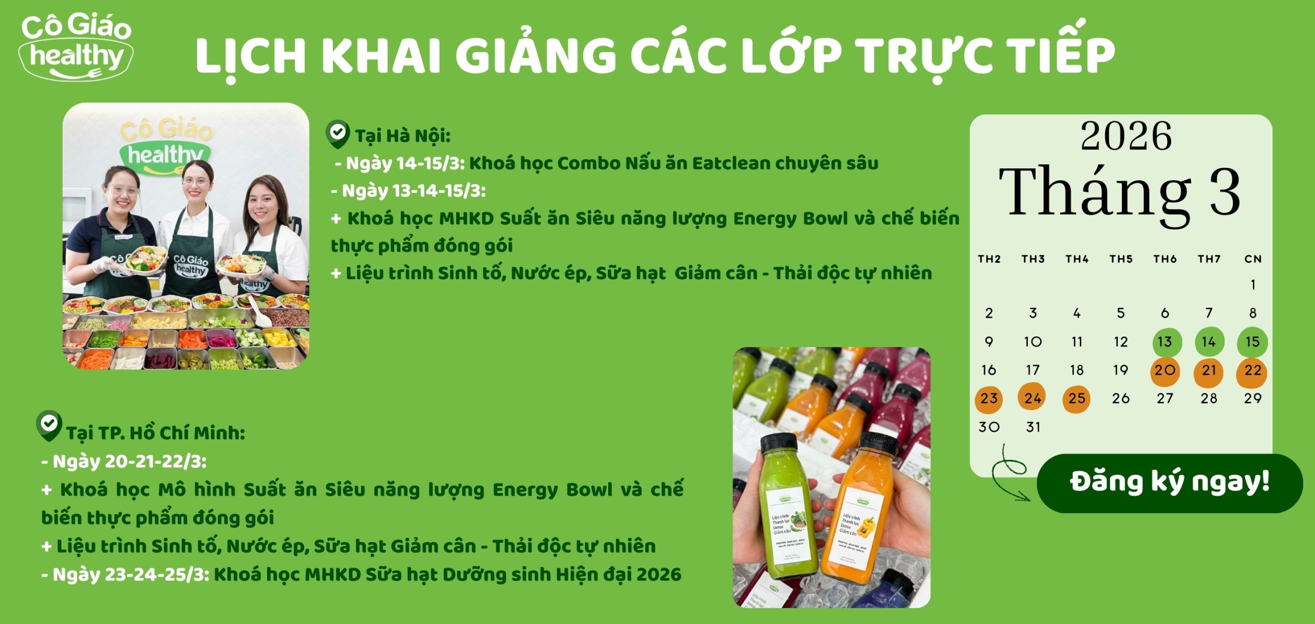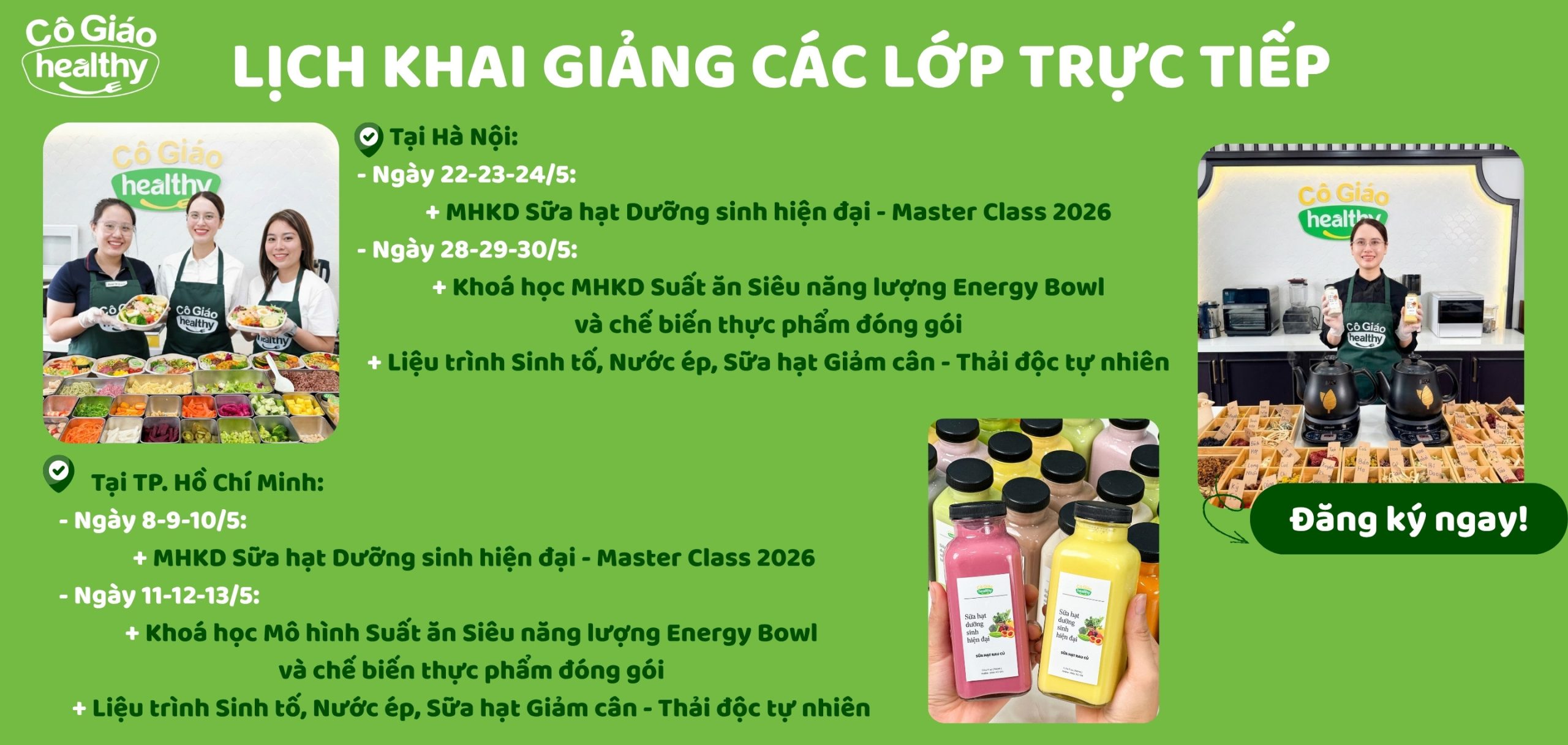 Các lớp học nấu ăn healthy với những công thức bổ dưỡng, dễ làm và đầy màu sắc.