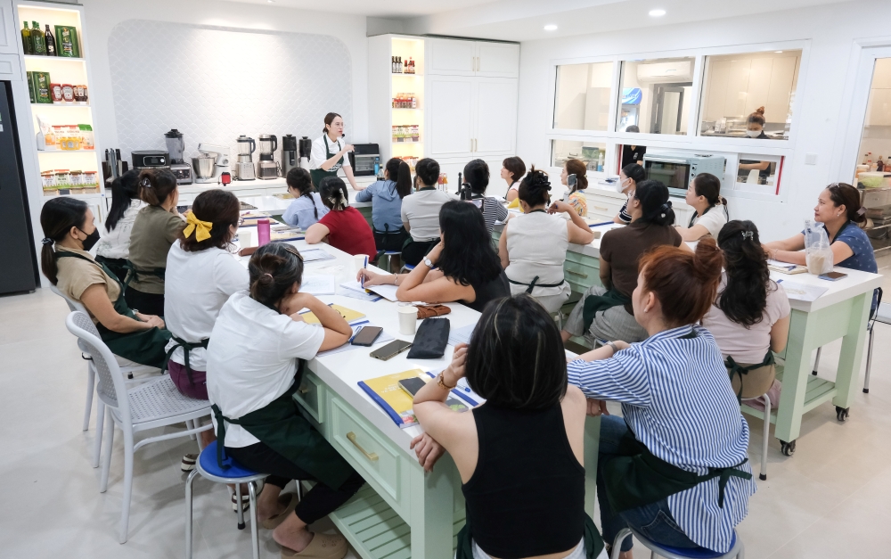 Ngoài việc học kỹ thuật, học viên lớp trực tiếp còn được coaching và tư vấn 1:1 cá nhân hóa. Giáo viên trực tiếp trao đổi theo mục tiêu riêng của từng người, dù là giảm cân, ăn uống lành mạnh cho gia đình hay định hướng kinh doanh, mở bán, mở quán. Nội dung tư vấn được xây dựng dựa trên năng lực, thời gian và ngân sách thực tế của học viên, đây là đặc quyền mà lớp online không thể đáp ứng đầy đủ.