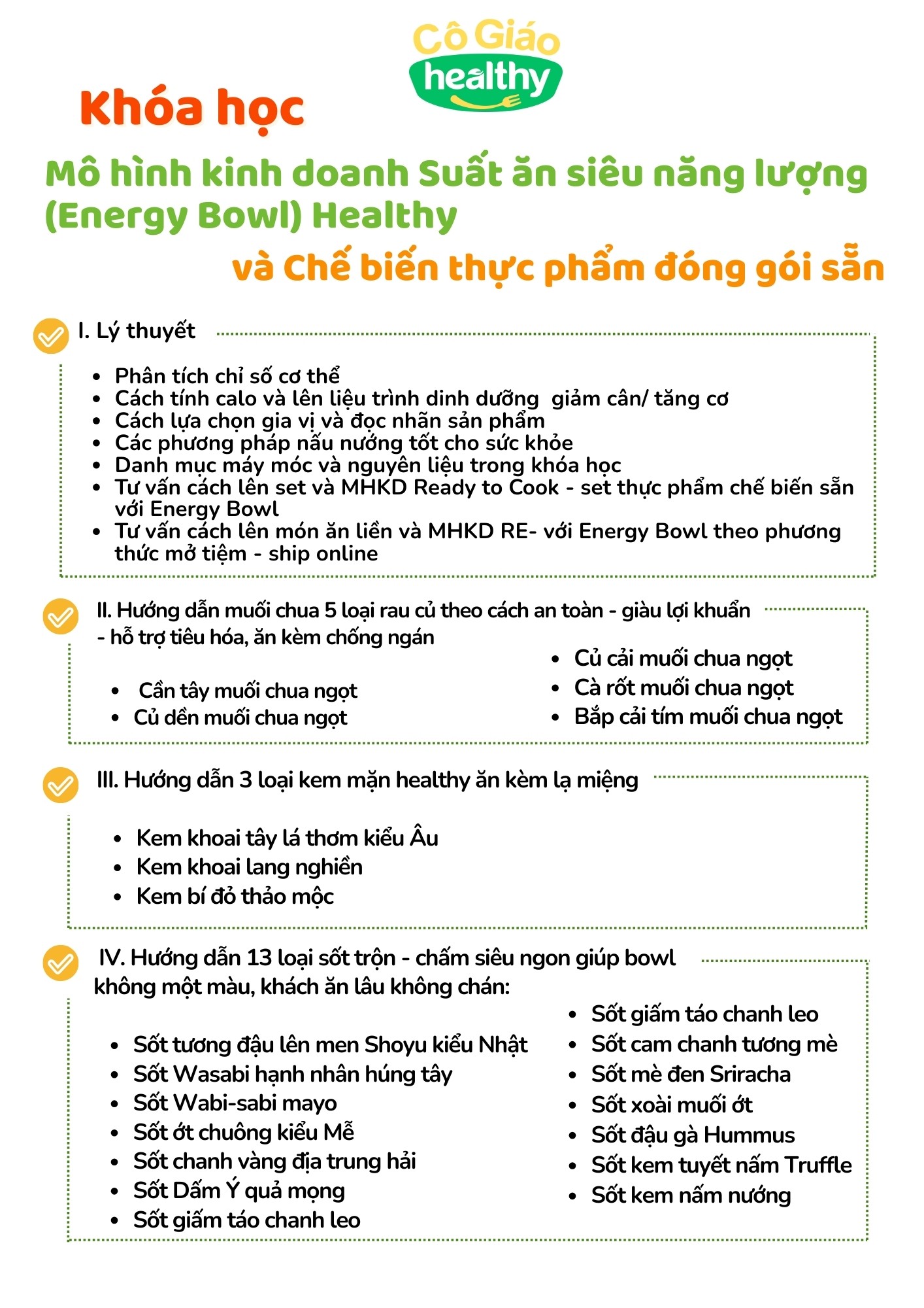 KHÓA HỌC MÔ HÌNH KINH DOANH SUẤT ĂN SIÊU NĂNG LƯỢNG (ENERGY BOWL) VÀ CHẾ BIẾN THỰC PHẨM ĐÓNG GÓI SẴN
